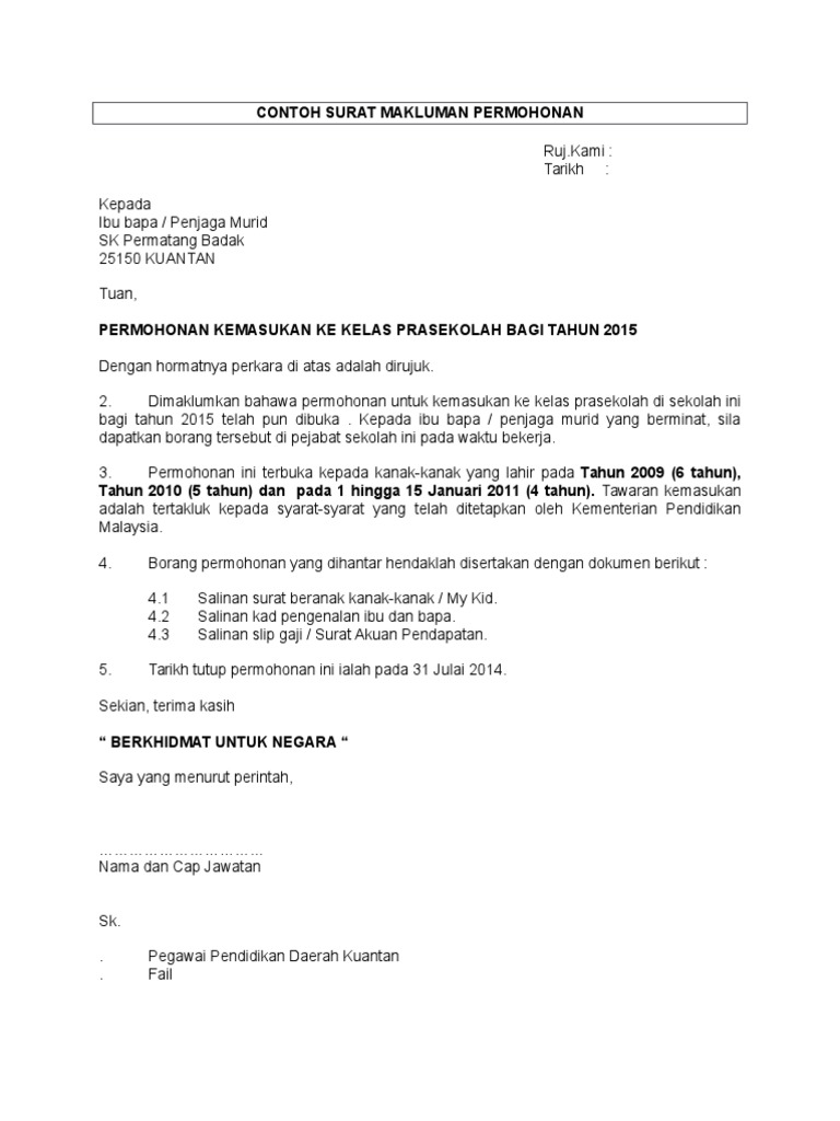 Contoh Surat Rayuan Permohonan Kemasukan Ke Sekolah Menengah Teknik Pdf